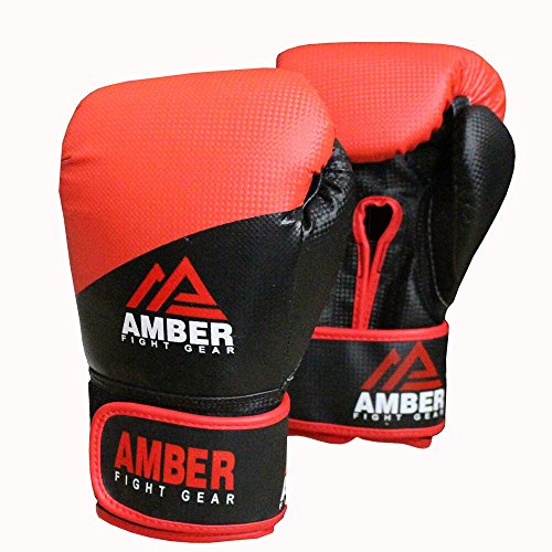 Amber Fight Gear Unisexs krok och ögla boxning träning slåss handskar Pro stil MMA kampsport sparring stans väska vantar Muay Thai kickboxing vuxen Svart 16 OZ