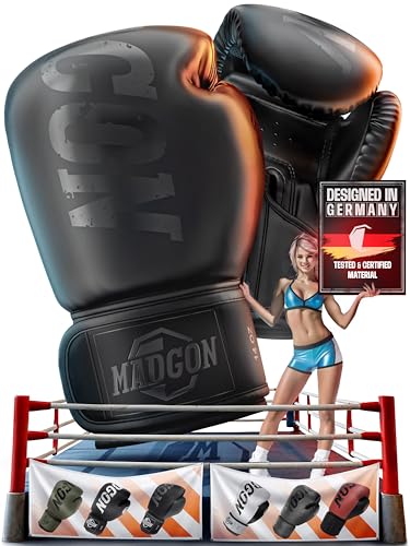 MADGON Boxningshandskar av Massivt Material för Lång Hållbarhet - Kickboxningshandskarna för Kampsport, MMA, Sparring och Boxning med Optimal Stötdämpning - Hög Bekvämlighet och inkl. Väska