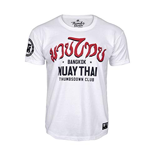 Thumbs Down Muay Thai t-shirt. Bangkok. MMA. Kampsport Gym. Träning Martial Arts. Avslappnad, Vit, S