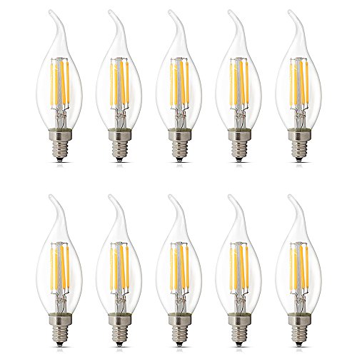 Tuoplyh 10-pack E14 LED-glödlampor, 4 W liten Edison-skruv kandelaber glödlampa C35 LED filament ljuskrona glödlampa, 40 W glödande ekvivalent, varm vit 2700 K, CRI>80