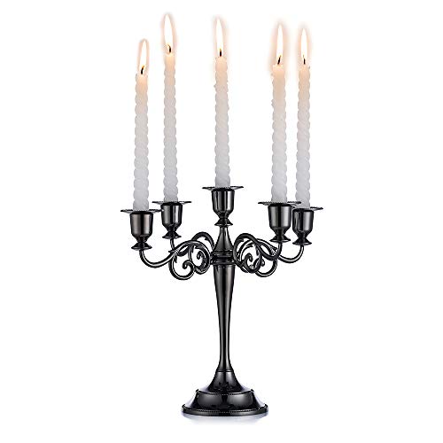 YOUEON 5 armar kandelaber, 26,4 cm hög glansig svart ljusstakehållare, gotisk kandelaber ljushållare för 2,5 cm diameter pelarljus, mittpunkt för bröllop, kyrka, öppen spis, halloween
