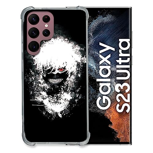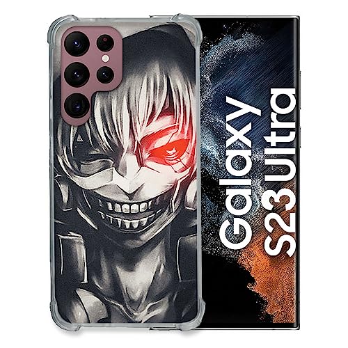 Cokitec Spetsat fodral i härdat glas för Samsung Galaxy S23 Ultra Manga Tokyo Ghoul Kaneki Tag