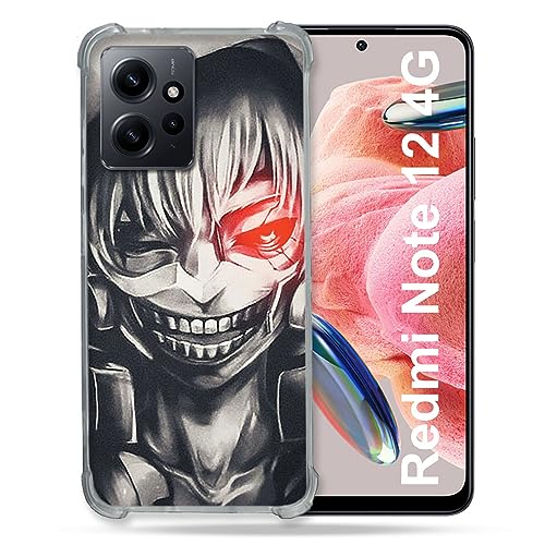 Cokitec Förstärkt fodral i härdat glas för Xiaomi Redmi Note 12 4G Manga Tokyo Ghoul Kaneki svart