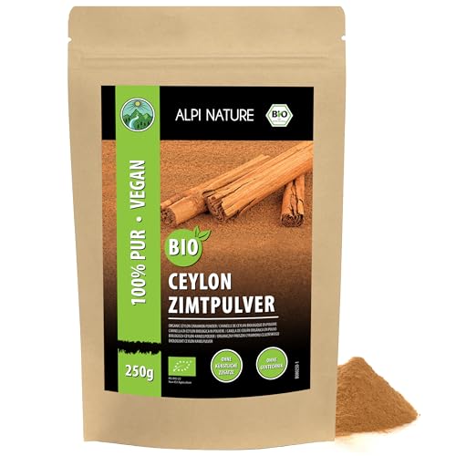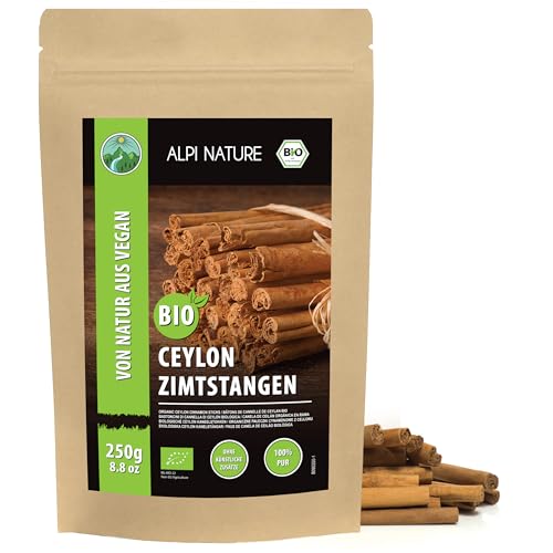 Alpi Nature EKOLOGISKA Ceylonkanelstänger (250g), från kontrollerad ekologisk odling, glutenfri, laktosfri, laboratorietestad, vegan, 100 procent naturlig kanel, försiktigt torkad