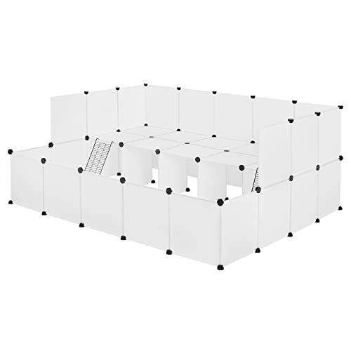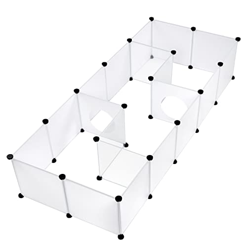 EUGAD Utomhusinhägnad kanin, utomhusinhägnad marsvin, valpkorg, smådjursinhägnad för inomhus, inhägnad för chinchilla-hamster, med hammare, vit + transparent, 175 x 75 x 35 cm 0047 WL