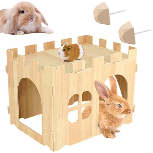BWOGUE Extra stort kaninslott kaninhus och gömställen i trä, avtagbart smådjur lek gömställe stuga för inomhus vuxen kanin marsvin chinchilla livsmiljö