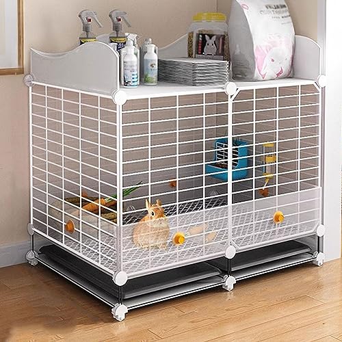 Kaninburar för kaniner inomhus med bricka, uppgraderat förvaringsutrymme, DIY lekhage i metall för 1-2 katter, iller, chinchilla, kanin, små djur (färg: vit, storlek: stor)