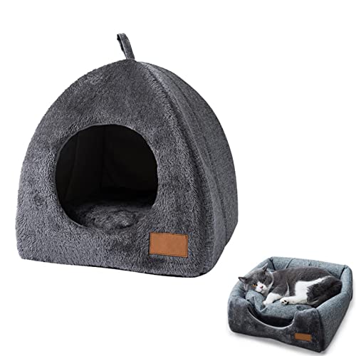 GIMOCOOL Husdjurstält grotta Igloo-säng för katter/små hundar, bärbar kattkennelsäng inomhus med avtagbar tvättbar kudde, 2-i-1 katttält/kattsäng hus för inomhus husdjur valp kattunge kanin