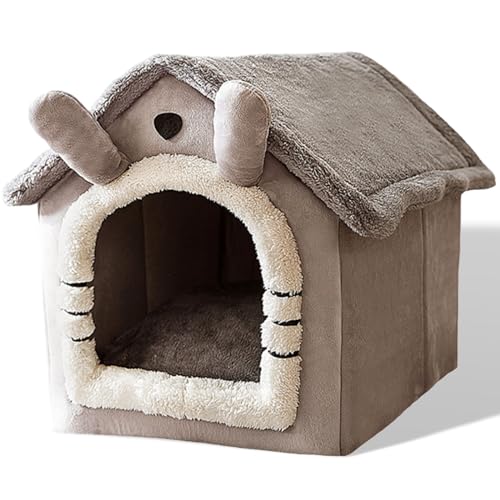 SEOUGEE Hundhus, bärbar kattkennelsäng för inomhus, med avtagbar kudde, 3-i-1, tvättbar husdjurssäng, grotta, avtagbar, vikbar, halkfri, varm för inomhus, husdjur, valp, kattunge, kanin