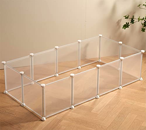 LURIVA Genomskinlig genomskinlig lekhage för små djur, burar för marsvin, hundvalp, lekhage, husdjur lekhage, kanin kanin inomhus staket pennhölje, vit klar plast lekhage, 30 x 30 cm, 12 paneler