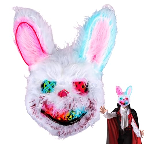 Byffoer Halloween mask skräck kaninmask, LED blodig kanin mask läskig halloween mask för vuxna barn, halloween kaninmasker för halloween kostym karnevalsfest cosplay maskerad