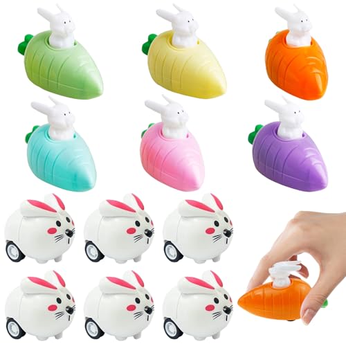 Qunkun 12 stycken uppdragbara kaniner med morot, kanin bilset, uppdragbara påskhare, billeksaker, uppdragningsleksak, kaniner, körkaniner, perfekt som påskgåva till påsk för barn