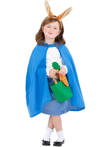 Smiffys Kaninkit, barn med huva cape, pannband, tyghink och morot, flickor maskeradklänning, kanin/unny utklädningstillbehör