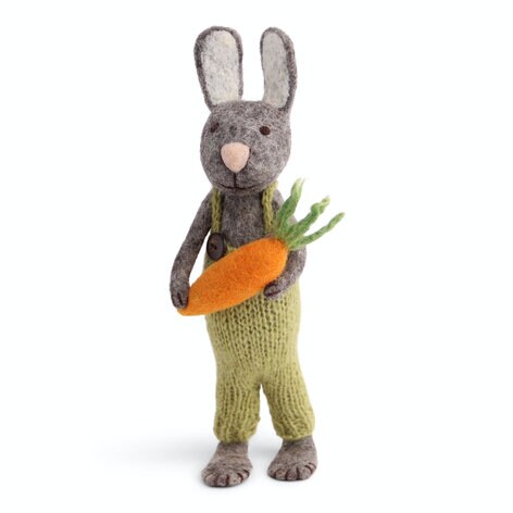 Stor Grå Kanin m. Gröna Byxor och Morot