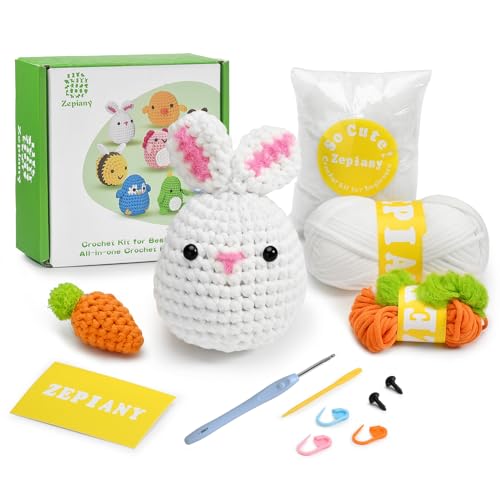 Nybörjarvirkningskit, virkade djur-kit, allt-i-ett virkningssats, steg-för-steg-instruktioner video, virkad startsats för nybörjare gör-det-själv hantverkskonst (kanin och morot)