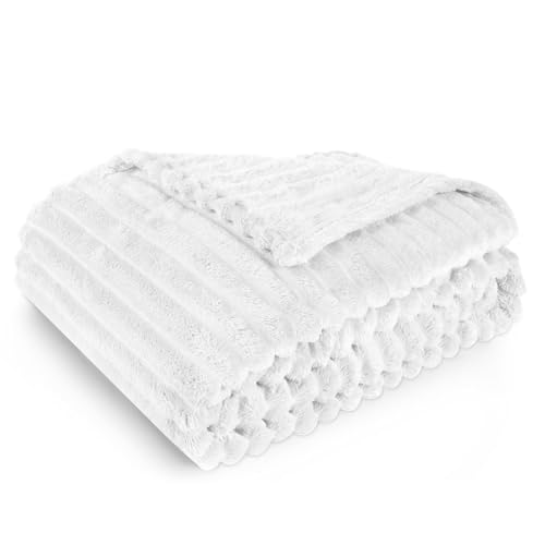 Rapport hem falsk kaninpäls mjuk beröring tjock ribbad grädde filt överkast (150 x 200 cm)