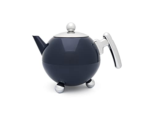 Bredemeijer stor blå magen dubbelväggig rostfritt stål tekanna 1,2 liter – isolerande kanna för te – längre varm tenjutning