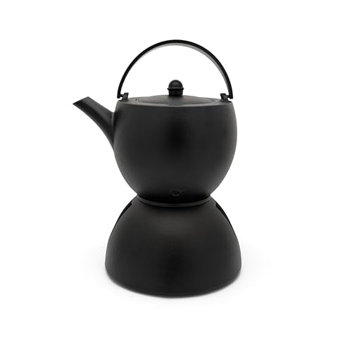 Bredemeijer Stor svart gjutjärnstekanna 1,2 liter – teset i gjutjärn med kanna för 1 värmeljus och tefilterinsats av rostfritt stål