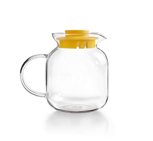 HEFTMAN 2 Liter Glaskaraff med Lock - Vattenkanna Tillverkad av Värmebeständig Borsilikat, Glaskaraff, Glaskanna för Iste, Juice, Mjölk, Sangria, Kaffe, Varma eller Kalla Drycker - 2L Karaff