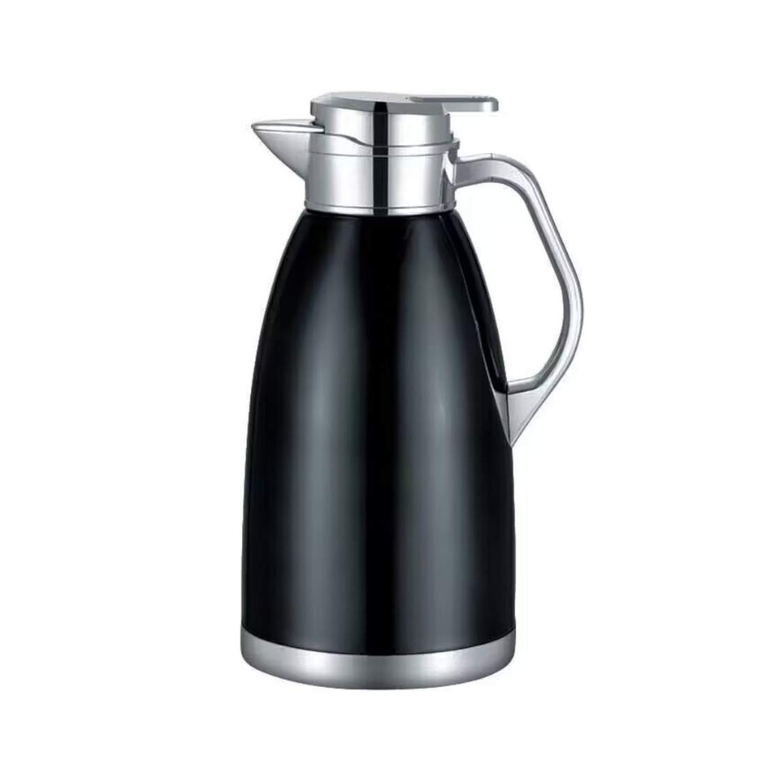 Termokanna, 304 rostfritt stål, isolerad termoskanna, 2 liter, kaffekanna, termos, 20 till 24 timmar, stor kapacitet, för kaffe, te, vatten, dryck, för hem, kontor och camping (svart)