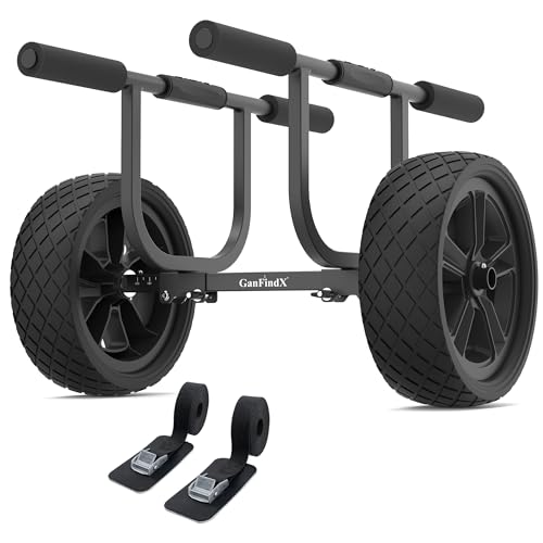 GanFindX Kraftig kajakvagn i aluminium 8/11 tum solida luftlösa hjul, 204 kg viktkapacitet, enkel avtagbar montering och justerbar bredd kajakdocka, lämplig för kajak och kanot