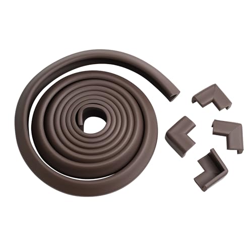 Hoffenbach Hörnskydd för Bebisar i Skumplast – 6,2m Bordskantsskydd & 12x Självhäftande Hörnskydd – Kantskydd för Barn, Bord, Skrivbord & Fönsterbräda – Chokladbrun