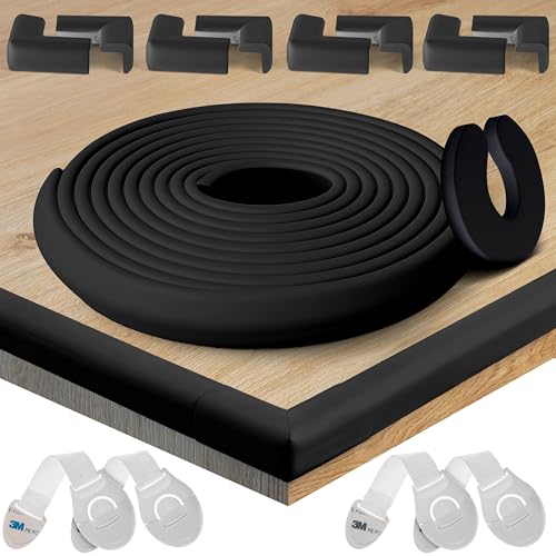 Hoffenbach Hörnskydd för Bebisar i Skumplast – 6,2m Bordskantsskydd & 12x Självhäftande Hörnskydd – Kantskydd för Barn, Bord, Skrivbord & Fönsterbräda – Svart