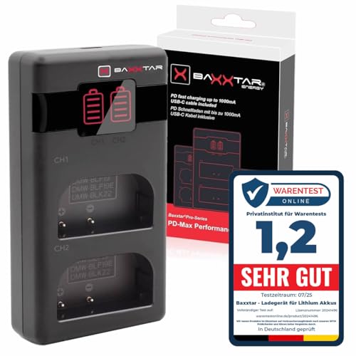 Baxxtar DMW-BLK22 DMW-BLF19 PD-MaxPerformance batteriladdare (1 500 mA) USB-C Mini Dual LCD – PD/QC kapabel (1619422) DC S5 S5D S5K S5-X S5II S5-IIX GH5 GH5-II GH5S GH6 G9 S9