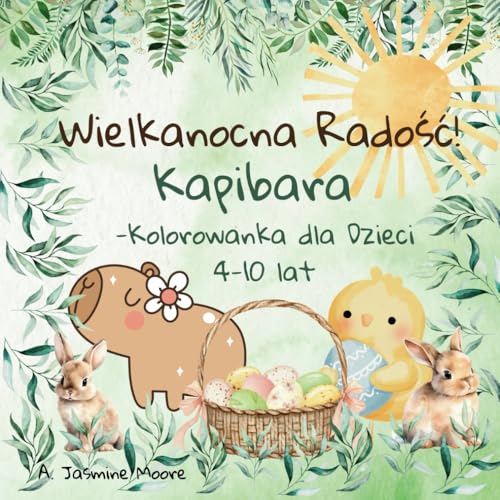 Wielkanocna Radość! Kapibara – Kolorowanka dla Dzieci 4-10 lat: 30 uroczych ilustracji z króliczkami, zajączkami i kwiatami – kreatywna zabawa z ciekawostkami!