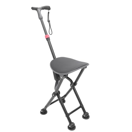 Hopfällbar Käpp med Sits Walking Stick 4 Bens Käppsäte Hopfällbar Käpp med Sits Halkfri Lättvikts Hopfällbar Käppstol för Kövandring