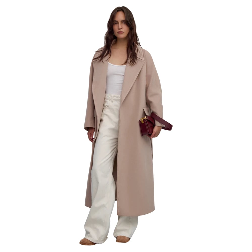 Estro, Kappor & Rockar , Dam, L, Polyester, Kvinnors Beige Ullblandad Kappa med Bred Krage