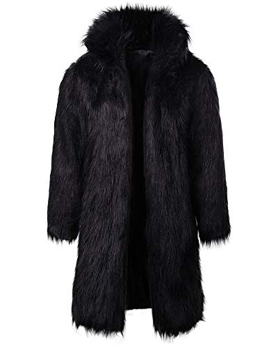 Lång kofta kappa i fuskpäls för män, vintermode parkas ytterrock, svart, XXL