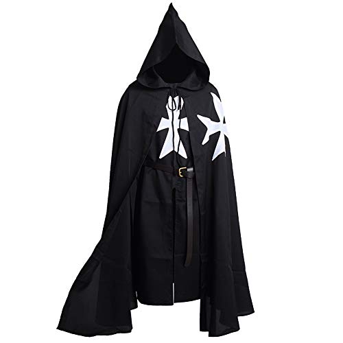 BLESSUME medeltida tempel riddare kostym tunika med kappa och bälte (svart2)
