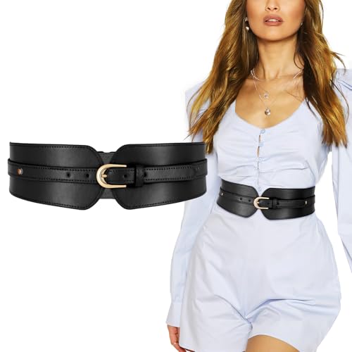 SUOSDEY Kvinnor brett midjebälte, elastiskt bälte för damer för klänning kappa med mode lager baksida, A: svart, 62.5 cm-75 cm midja