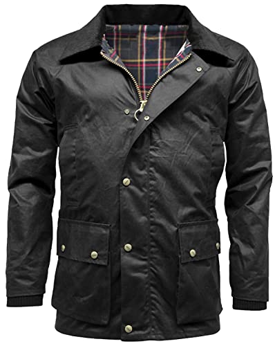 Barker vaxjacka för män med avtagbar huva och tartan foder vuxna antik långärmad dragkedja dekorerad kappa, Svart, XL