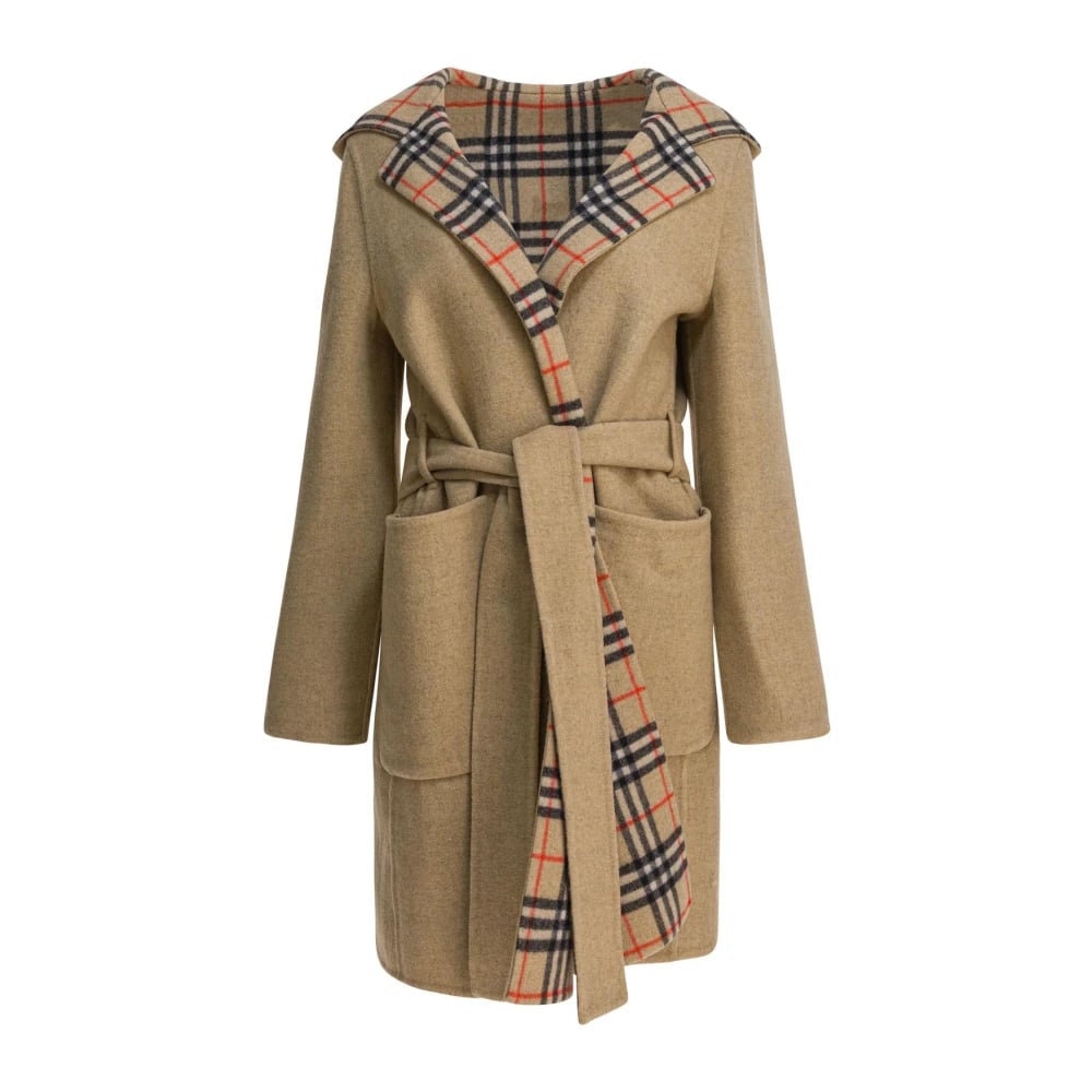 Burberry, Kappor & Rockar , Dam, M, Läder, Vändbar kappa i ullmix med signaturrutigt foder