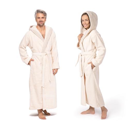 Boland 13410 – Kostym jultomte, röd, lång kappa med huva och vit dragsko, vit tomtebar, för damer och herrar, jul, karneval, temafest