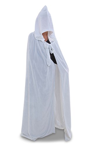 CHSYOO vit kappa med huva lång cape med huvdräkt för Halloween-kostymfest häxa djävulen vampyr cosplay fancy dress
