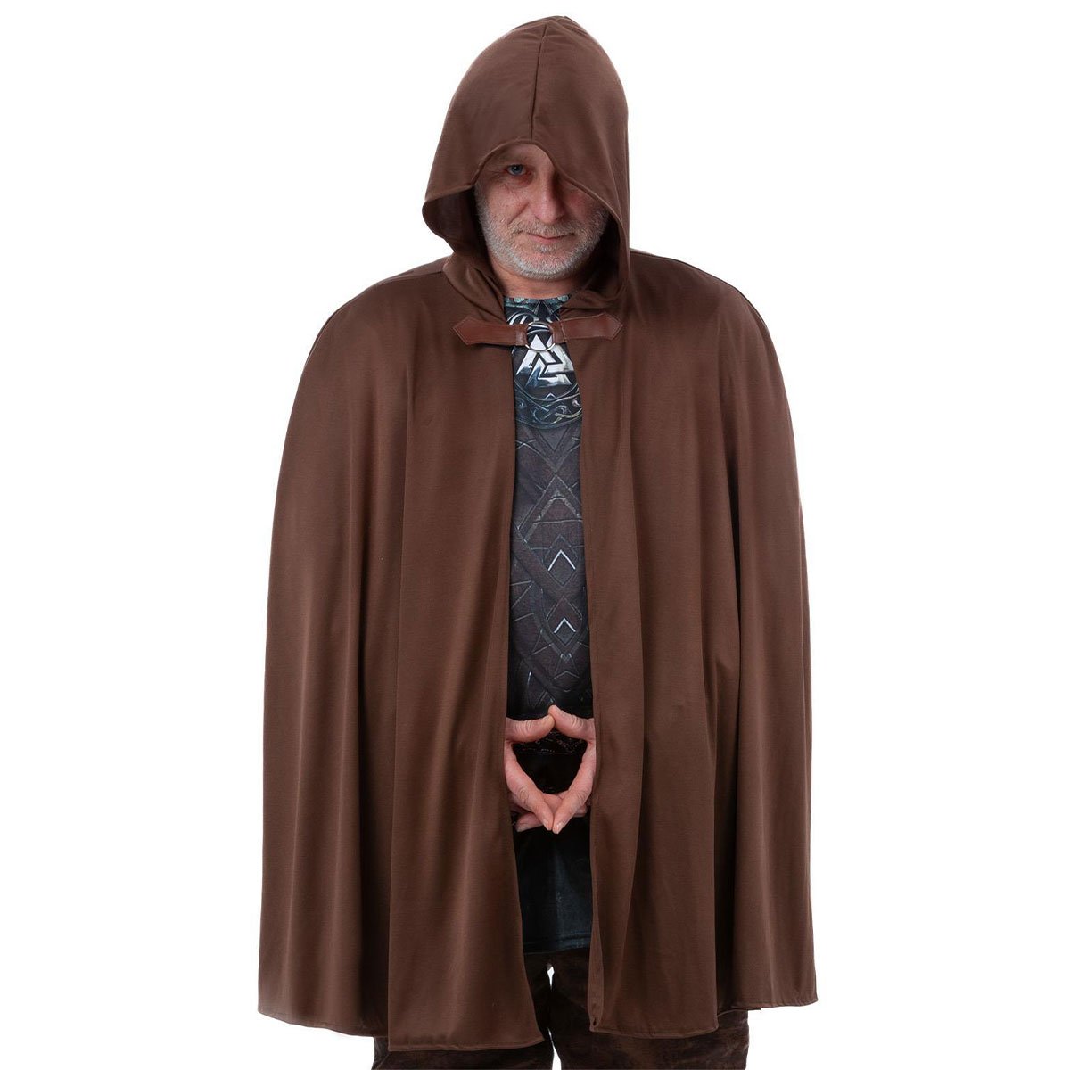 Battle-Merchant medeltida kappa, Burkhard med huva/gugel, kvinnor, män, magisk kostym, kläder, LARP viking, BRUN, one size