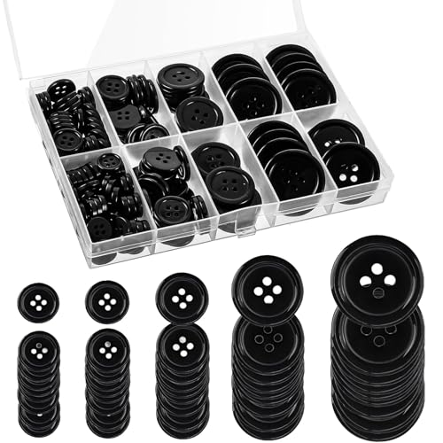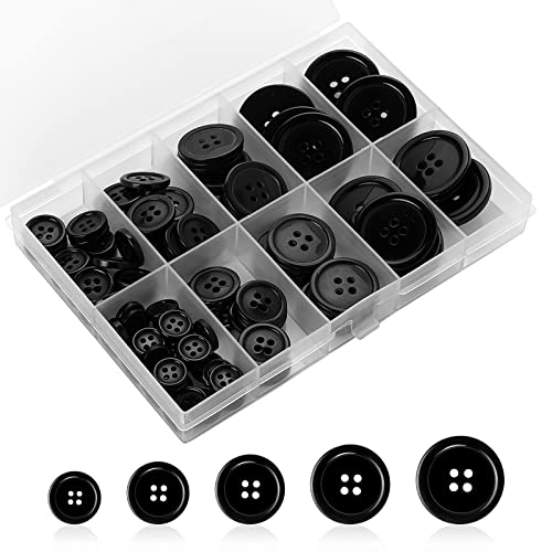 Sliverdew 100 st sömnadsknappar runda svarta knappar harts 4-håls hantverksknappar 5 storlekar blandade sömnadsknappar lämpliga för sömnad kostym kappa skjorta och gör-det-själv-dekoration