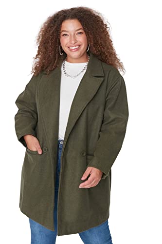 TRENDYOL Trendyol dam vanlig dubbelknäppt vanligt tyg stora storlekar i kappan, kaki, 42 EU, kaki, 42
