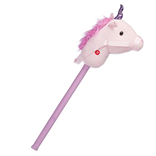 Relaxdays 10023852 Käpphäst med ljud, av trä och plysch, söt käpphäst, Wiehern & hovrappel, 74 cm, rosa