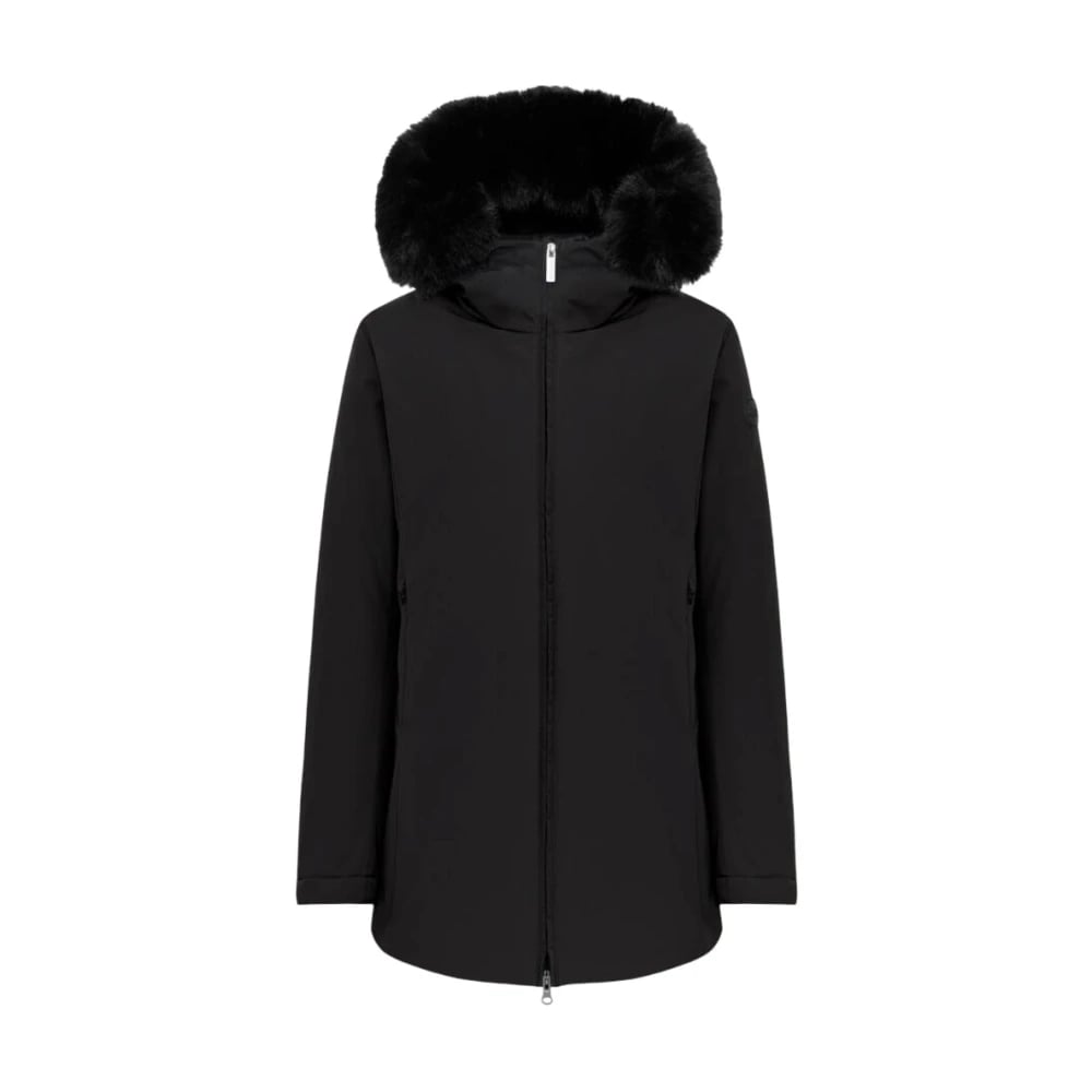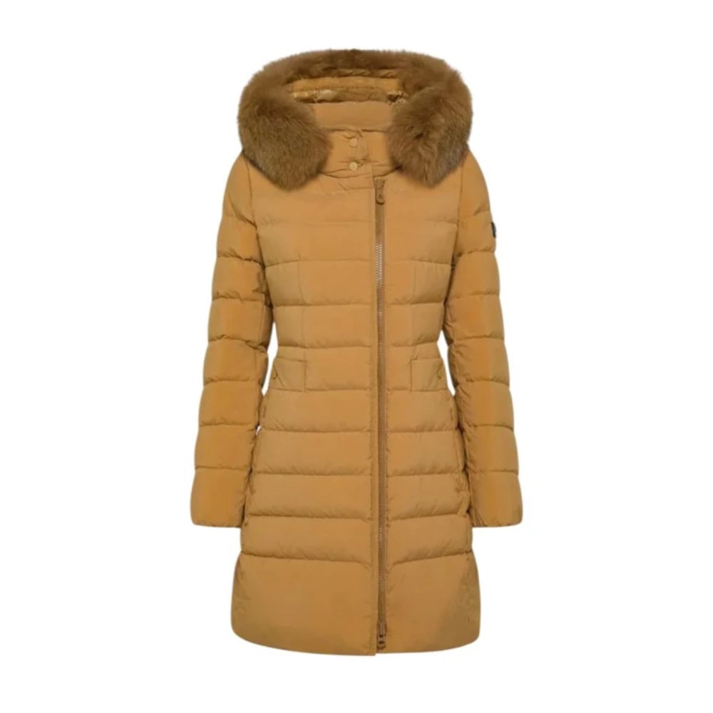 Peuterey, Kappor & Rockar , Dam, XS, Polyester, Lång dunjacka med hög krage och Seriola-päls