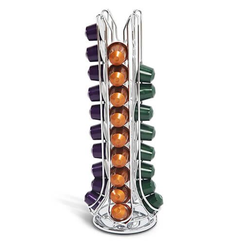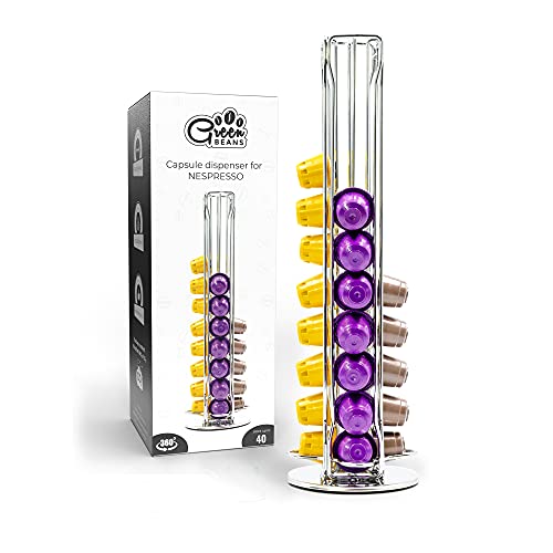 Green BEANS kapselhållare kompatibel för 40 Nespresso-kapslar – förkromad kaffekapselstativ – 360° roterbar