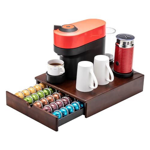 Flagship för Nespresso kapselhållare Vertuo pod låda kaffe kapsel förvaring för Vertuo pod med elegant träram (50 kapselns kapacitet)