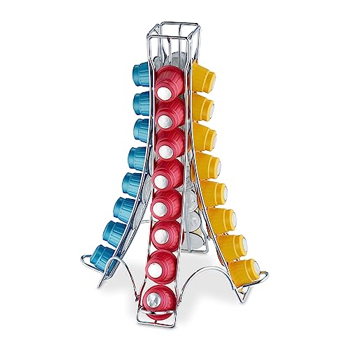 Relaxdays Kapselhållare kompatibel med Nespresso, 32 kapslar, kapselstativ metall, HxBxD: 30 x 21,5 x 21,5 cm, silver