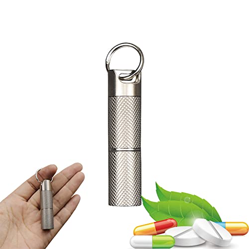 Diskret pillerhållare nyckelring, titan vattentät pillerfodral, resekompakt utomhus EDC piller kapselhållare, bärbar pillerbehållare ficka daglig medicinflaska, akut aspirin pillerkedja