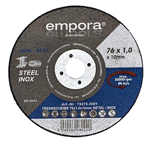 EMPORA Kapskiva 76 mm - kapskiva för vinkelslip - flexskiva - slipskiva - INOX stålmetall 76 mm x 1,0 mm x 10 mm - max. 20 000 RPM - 80 m/s - EN. 12413