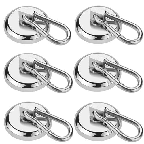 Wukong Magnetiska krokar, 6 stycken superstark neodymmagnet 27 kg (60 lb) med avtagbar karbinhake, robusta magnetiska krokar för köksbörsgaller skrivbord
