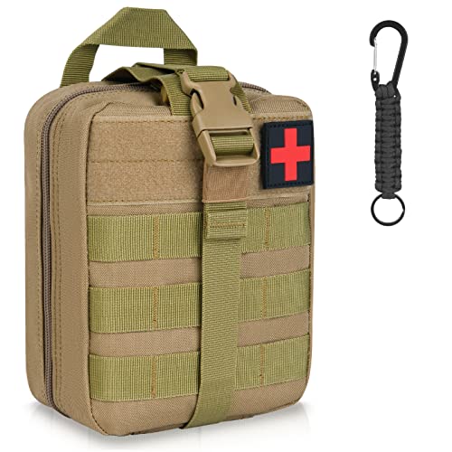 Flintronic Första Hjälpen Taktiska Midjepaket, Militär Kompakt Bältespåse Multifunktionell, Universell Utomhus Midjeväska met Karabiner för Sport, Vandring, Camping, Resor, Bergsklättring (Kaki)